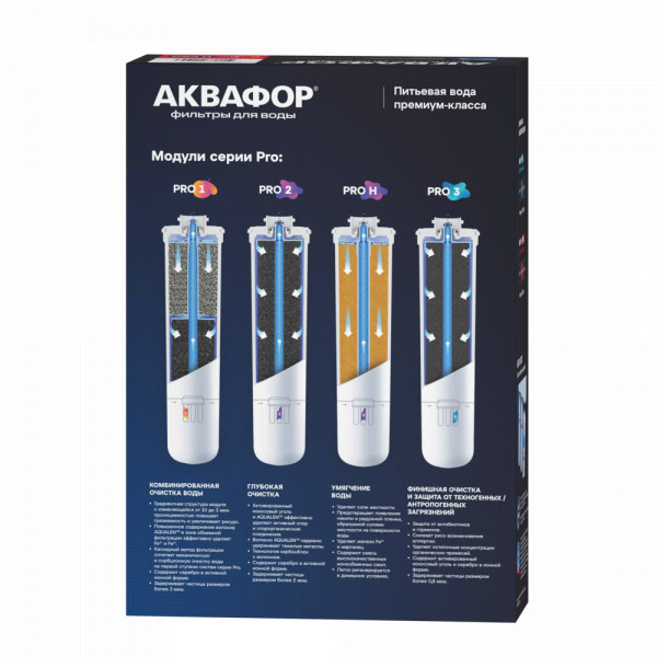 • Три модуля системы АКВАФОР Baby Н Pro — Pro 1, Pro Н и Pro 3 обеспечивают тонкую сорбционную фильтрацию, которая гарантирует полное удаление остаточных количеств фармацевтических препаратов (гормонов и антибиотиков), а также умягчают воду средней жесткости. Система удаляет хлор, тяжелые металлы, пестициды, нефтепродукты и распространенные токсины и аллергены.